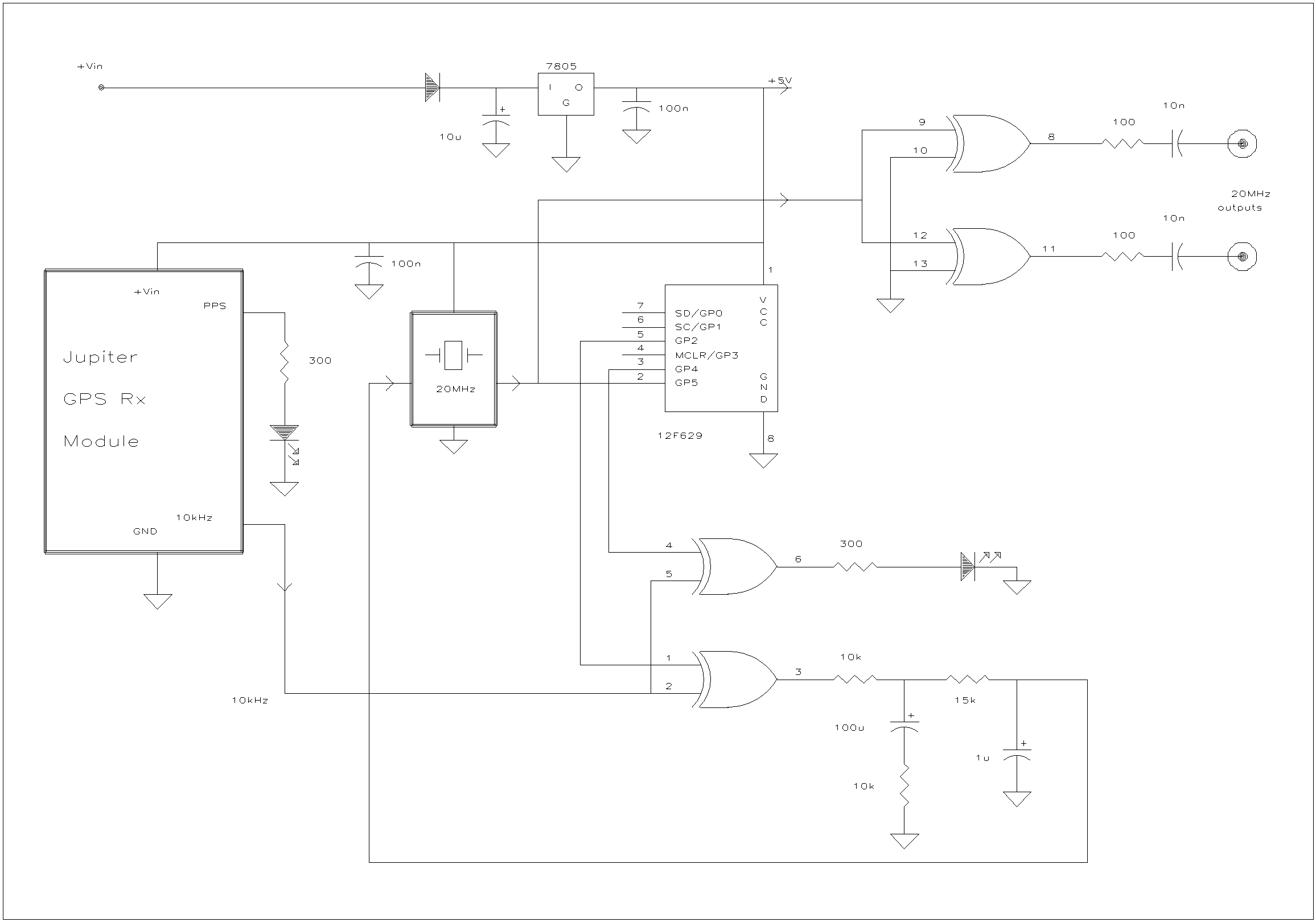 This follows a Similar design concept to that of the 'Simple GPSDO' using the 10kHz output from a Jupiter GPS Receiver module to lock a VCXO in a phase locked loop, but here the circuitry has been simplified still further.